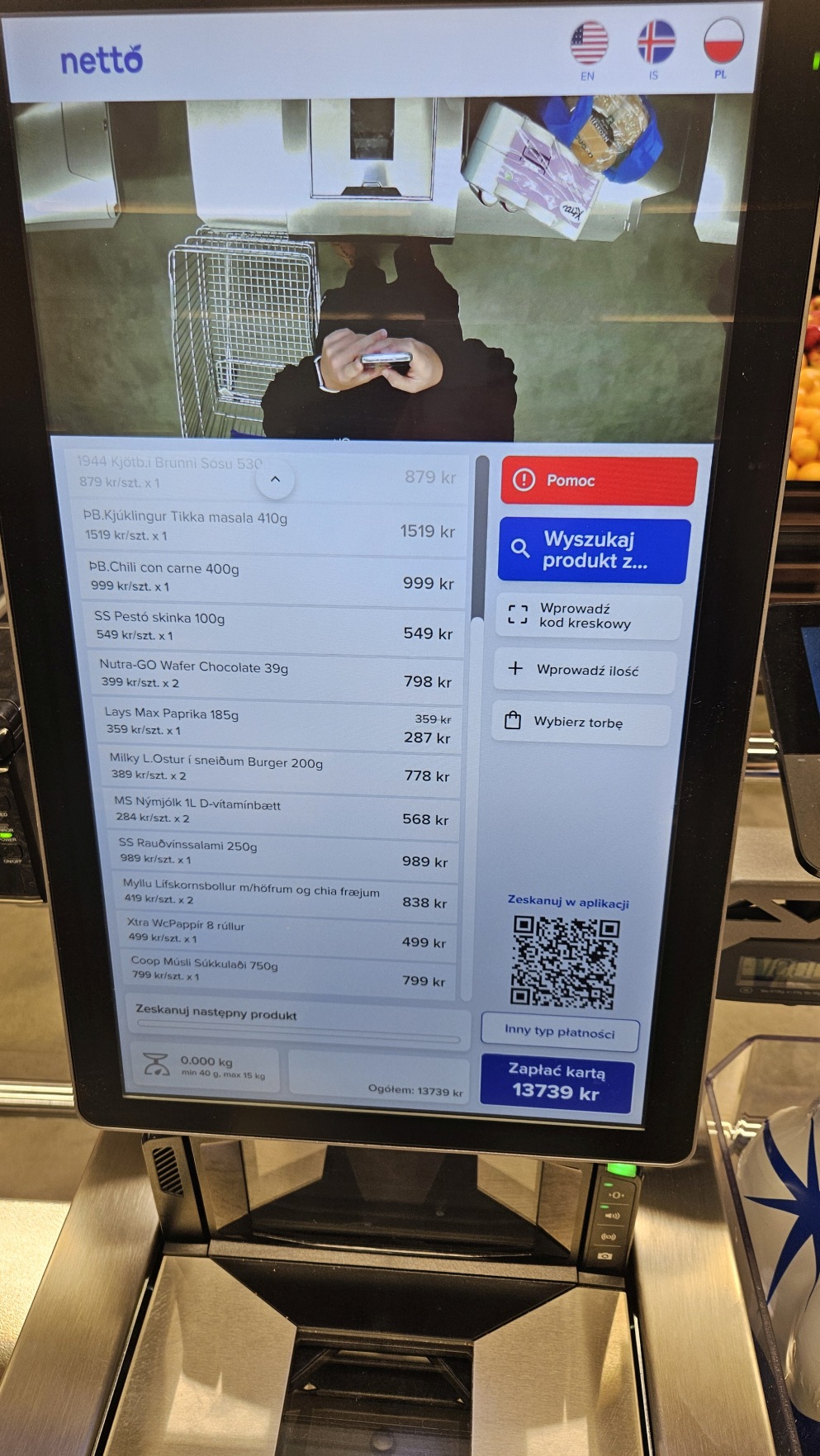 Odebra艂em samoch贸d, zjad艂em w KFC (korzystaj膮c z niemal ostatniego kontaktu na najbli偶szy tydzie艅 z tak rozwini臋t膮 cywilizacj膮!) i pojecha艂em na pierwsze du偶e zakupy do Netto. Jak to w ka偶dej kasie samoobs艂ugowej, j臋zyki s膮 trzy: islandzki, angielski i polski. Polacy s膮 tu najwi臋ksz膮 mniejszo艣ci膮.