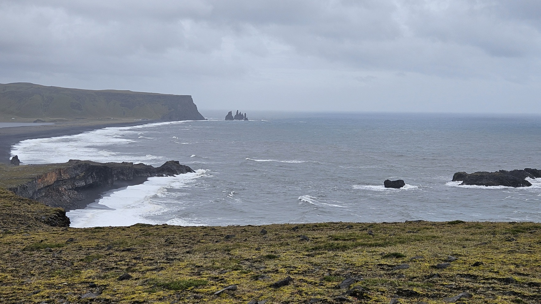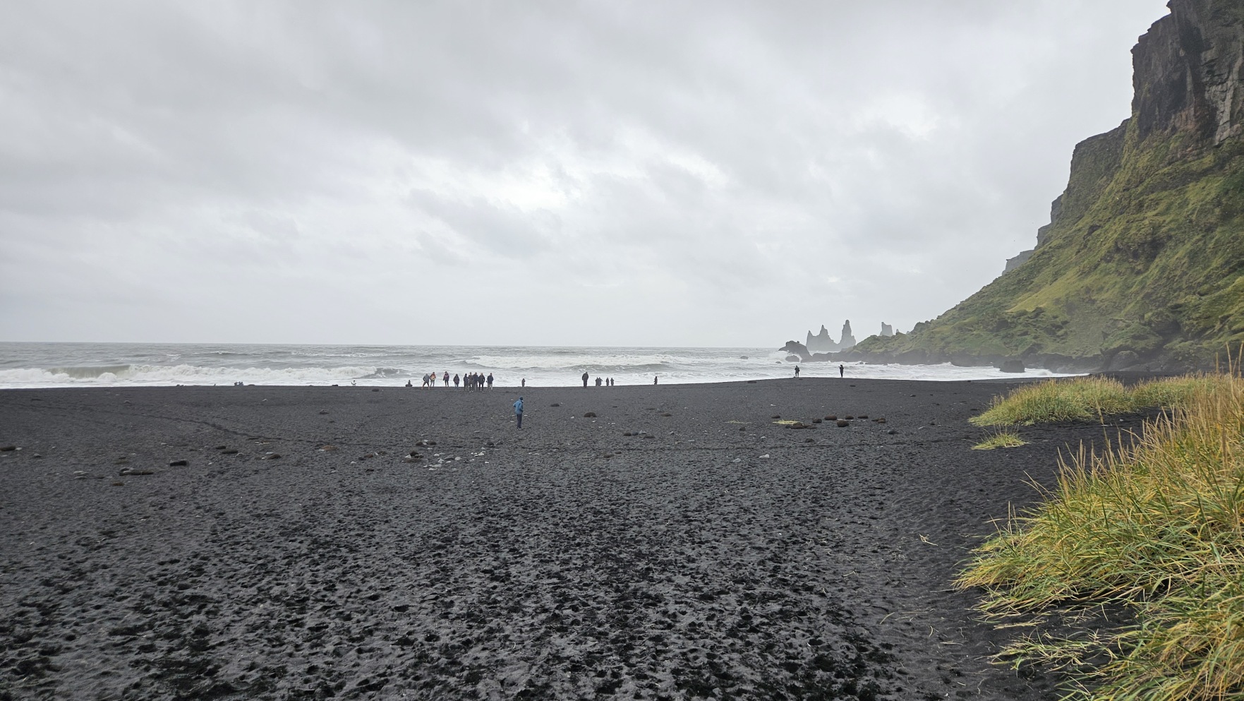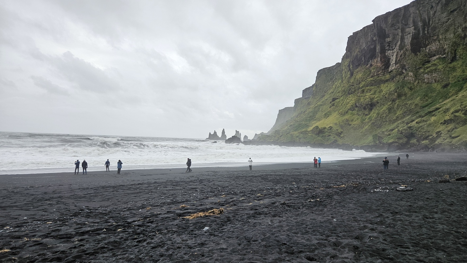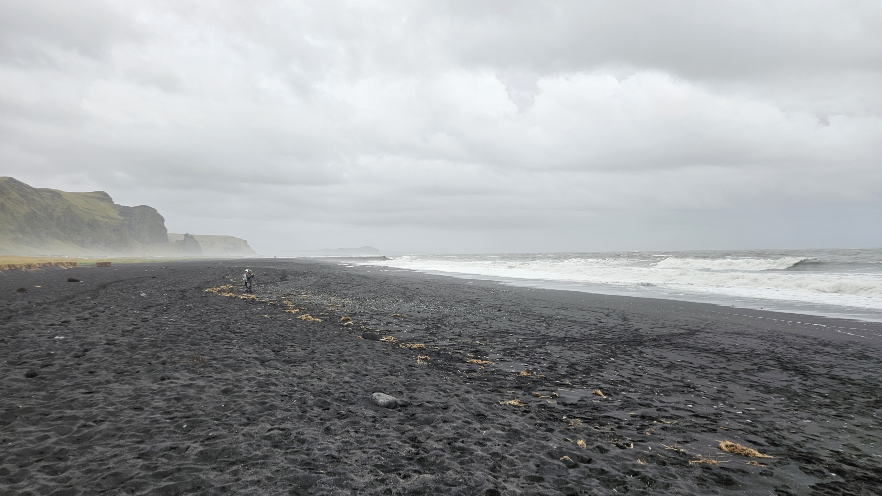 Kolejny post贸j by艂 przy 艂uku skalnym Dyrh贸laey i punkcie widokowym na Reynisfjara Beach. Na sam膮 pla偶臋 wszed艂em troch臋 dalej, za „rogiem”, na V铆kurfjara Black Sand Beach. Nawet d艂u偶sz膮 chwil臋 pole偶a艂em i pomedytowa艂em. Tak uwielbiam pla偶e same w sobie, 偶e nie potrzebuj臋 s艂o艅ca.
