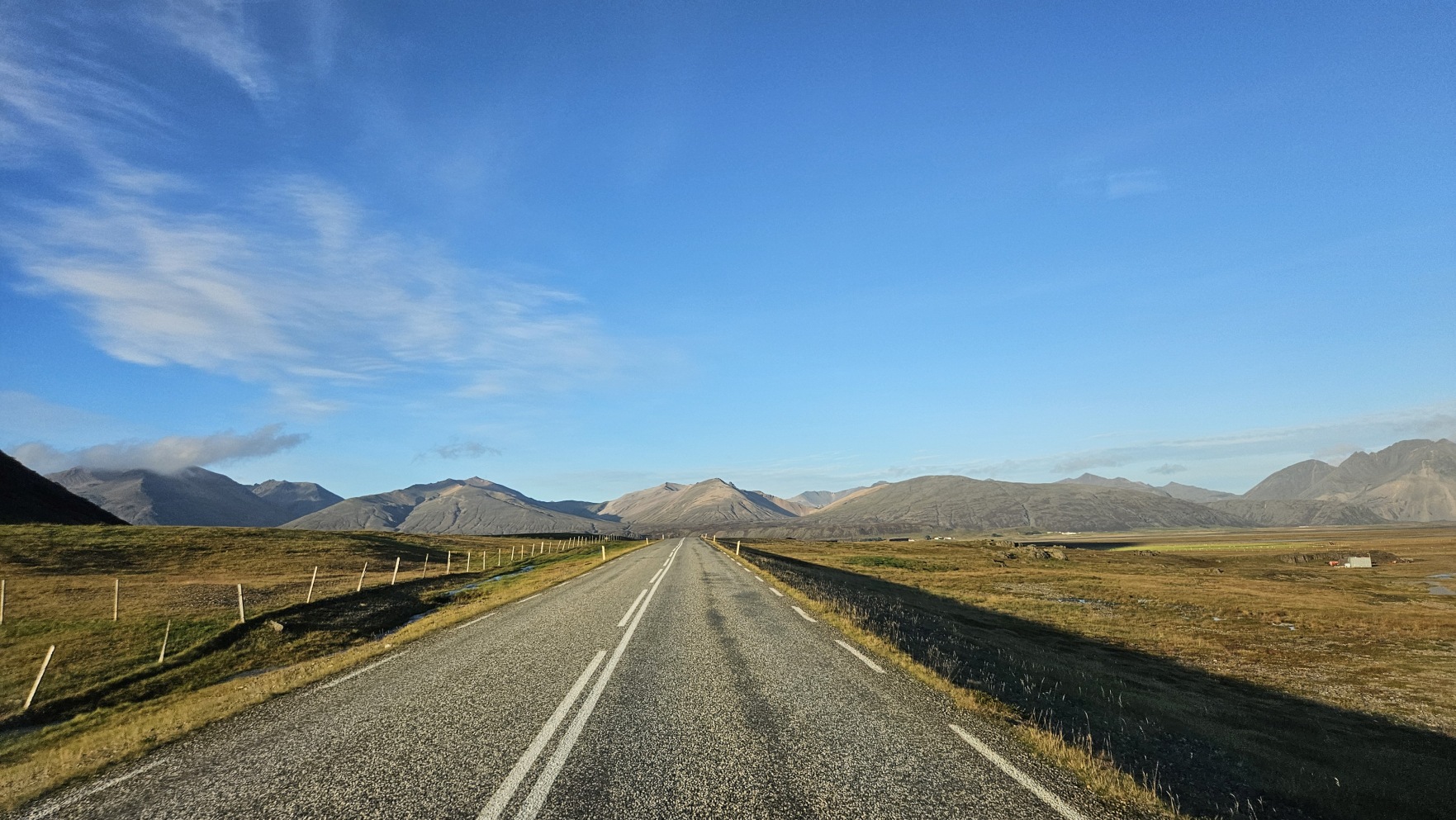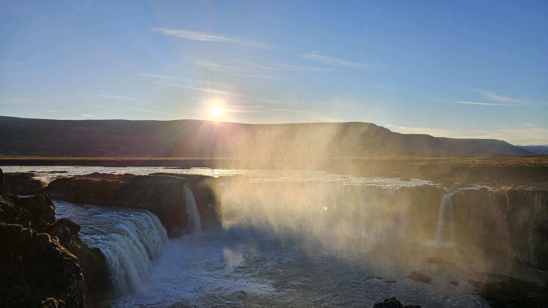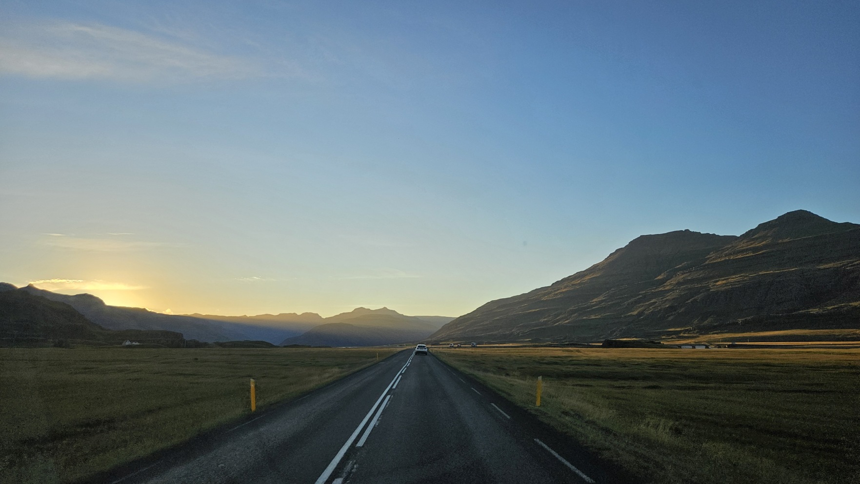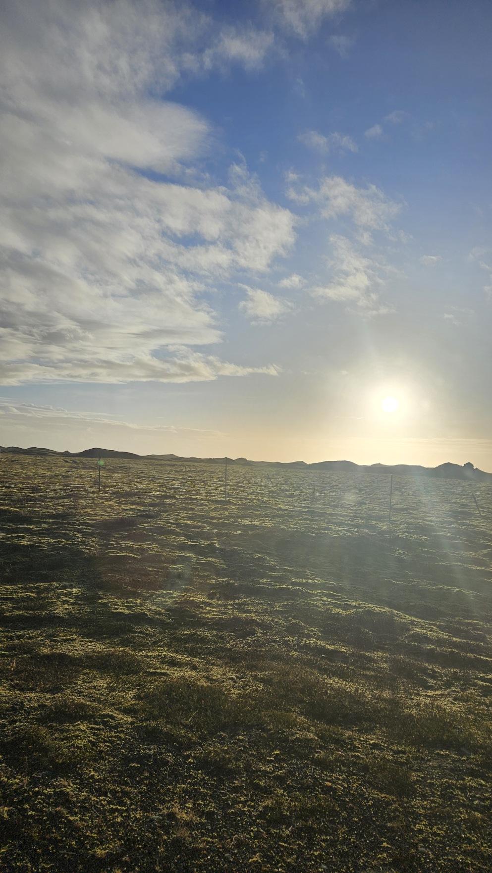 Kolejny dzie艅 by艂 bardzo s艂oneczny, wszystko w tym samym miejscu wygl膮da艂o zupe艂nie inaczej. Sprawdza艂em komunikaty odno艣nie dalszego zamkni臋cia drogi na stronie internetowej, w pewnym momencie by艂a informacja, 偶e dzisiaj ju偶 nie rozstanie otwarcia. To wtedy musia艂bym zrezygnowa膰 z pe艂nego objazdu Islandii i wraca膰 w kierunku stolicy t膮 sam膮 tras膮. Ale nagle, komunikat si臋 zmieni艂, drog臋 otwarto przed 17. Ruszy艂em wi臋c w drog臋, chc膮c nadrobi膰 jak najwi臋cej, ale te偶 nie kosztem jazdy w ciemno艣ci i utraty pi臋knych widok贸w. Nocleg wypad艂 przy rzece, to by艂o jedno z fajniejszych miejsc.