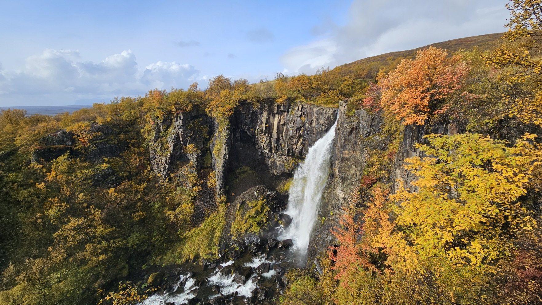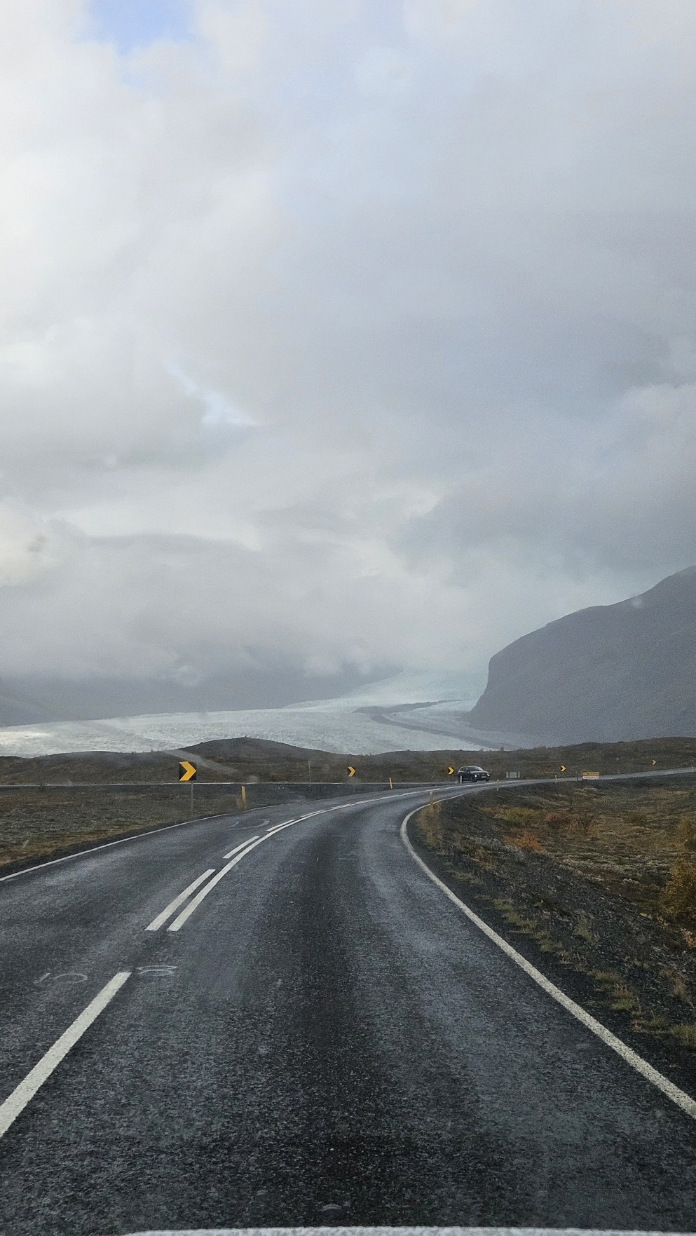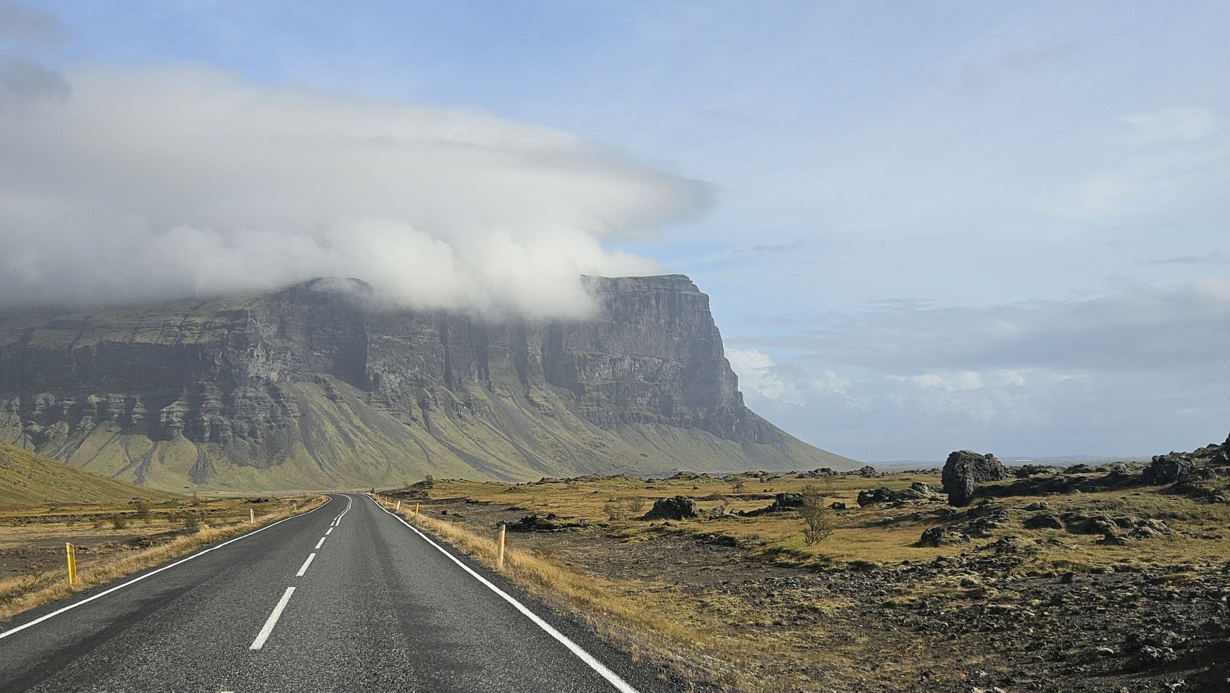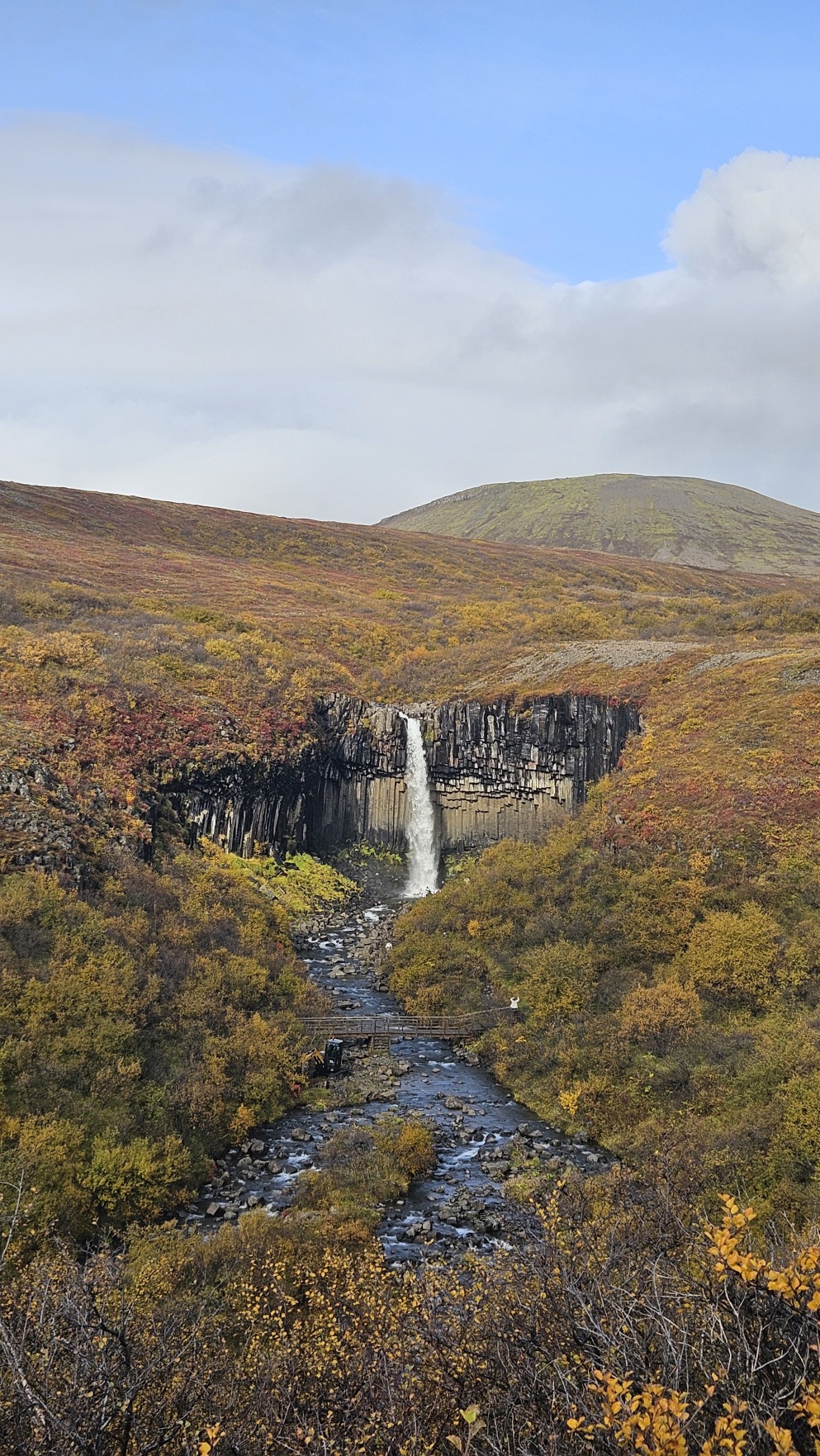 Kolejny dzie艅 by艂 bardzo s艂oneczny, wszystko w tym samym miejscu wygl膮da艂o zupe艂nie inaczej. Sprawdza艂em komunikaty odno艣nie dalszego zamkni臋cia drogi na stronie internetowej, w pewnym momencie by艂a informacja, 偶e dzisiaj ju偶 nie rozstanie otwarcia. To wtedy musia艂bym zrezygnowa膰 z pe艂nego objazdu Islandii i wraca膰 w kierunku stolicy t膮 sam膮 tras膮. Ale nagle, komunikat si臋 zmieni艂, drog臋 otwarto przed 17. Ruszy艂em wi臋c w drog臋, chc膮c nadrobi膰 jak najwi臋cej, ale te偶 nie kosztem jazdy w ciemno艣ci i utraty pi臋knych widok贸w. Nocleg wypad艂 przy rzece, to by艂o jedno z fajniejszych miejsc.