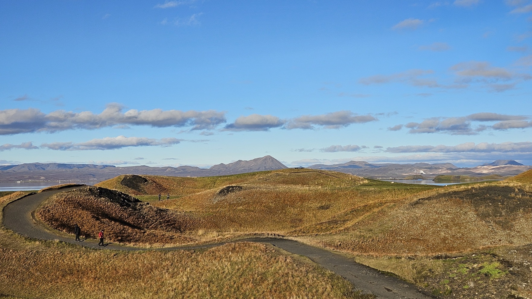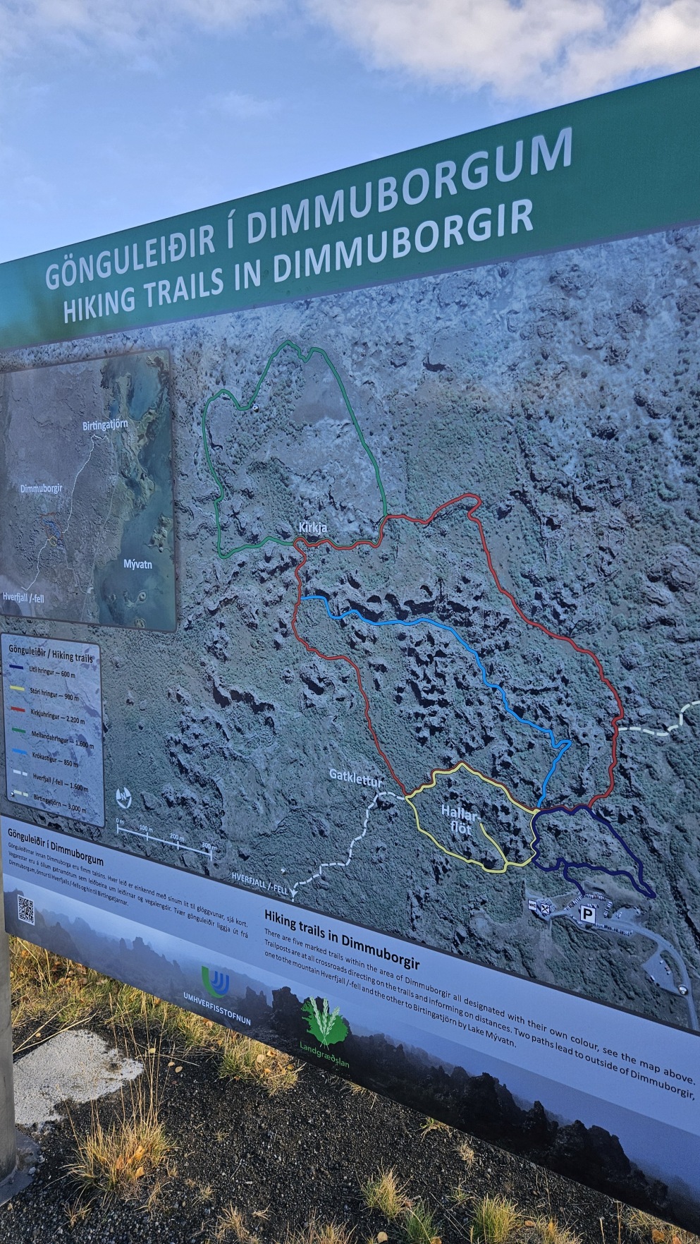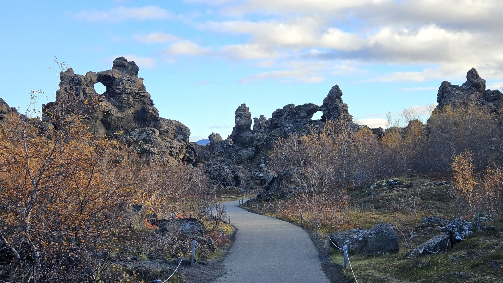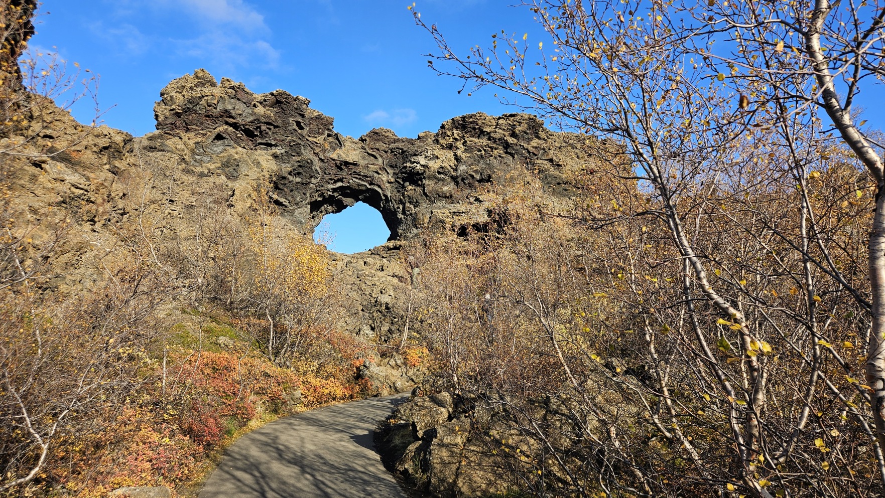 Chwil臋 dalej znajdowa艂y si臋 ciekawe formacje z zastyg艂ej lawy, Dimmuborgir i punkt widokowy na jezioro Myvatn, Sk煤tusta冒ag铆gar.