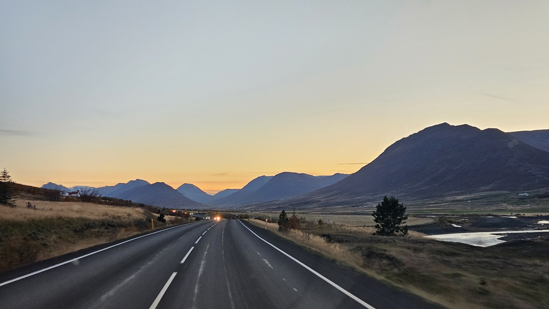 Na koniec dnia wodospad Go冒afoss, przejazd przez drugie najwi臋ksze miasto Akureyri聽(tam tankowanie ciep艂ej wody) i nocleg po drodze tam, gdzie z艂apa艂a mnie ciemno艣膰. Tego dnia na niebie ukaza艂a si臋 zorza polarna. Uczciwie musz臋 powiedzie膰, 偶e na zdj臋ciach wygl膮da to lepiej ni偶 w rzeczywisto艣ci. 馃檪 Nie spodziewaj膮c si臋 i nie wypatruj膮c jej, b臋d膮c w innym miejscu, pomy艣la艂bym mo偶e, 偶e to jakie艣 艣wiat艂o miasta odbite od chmury.