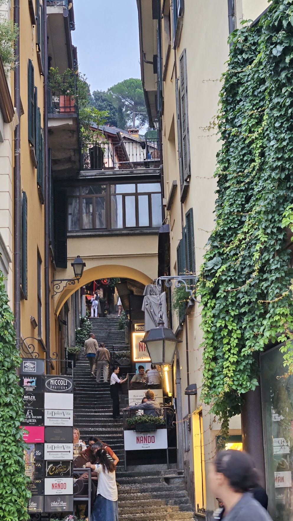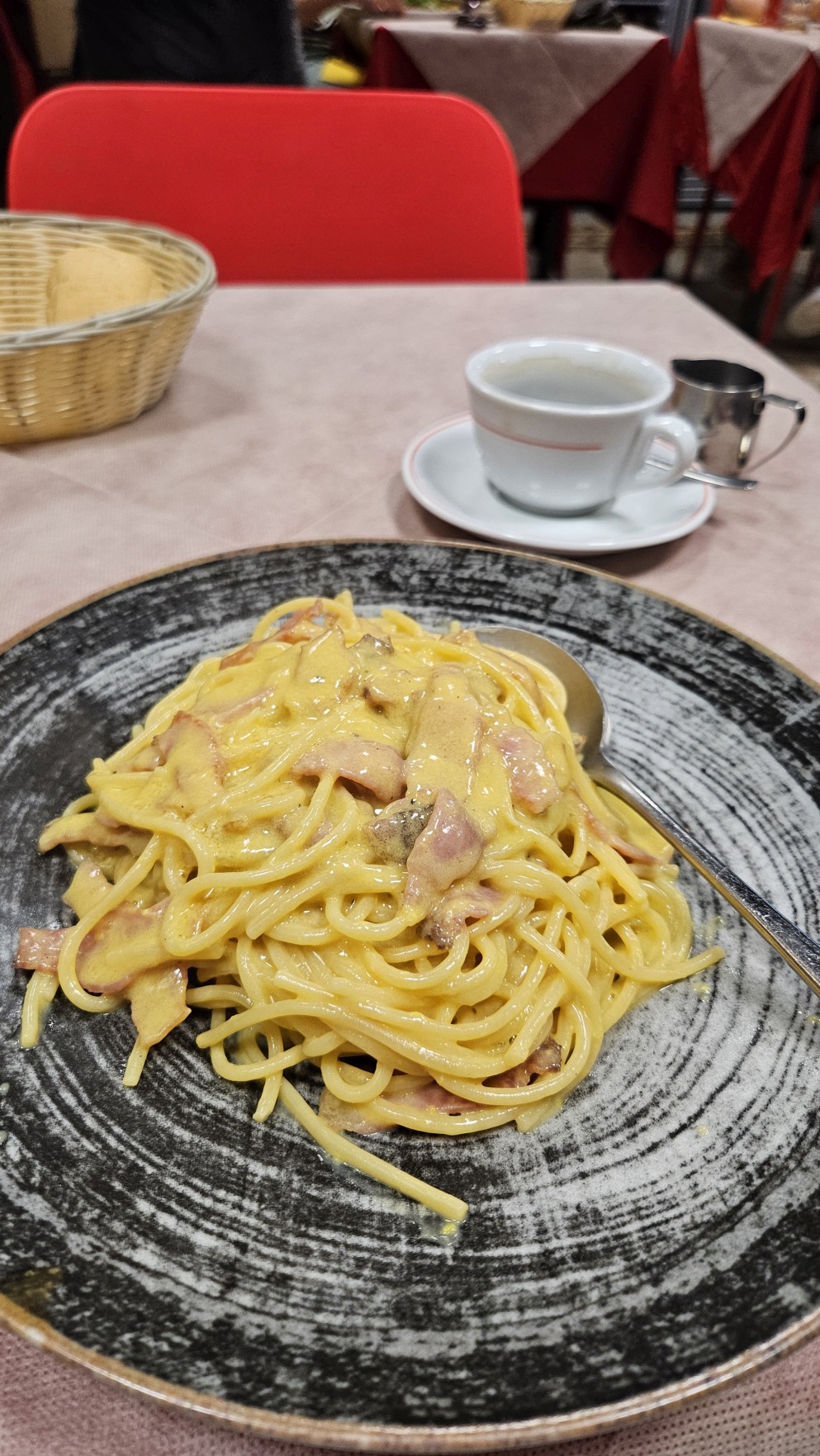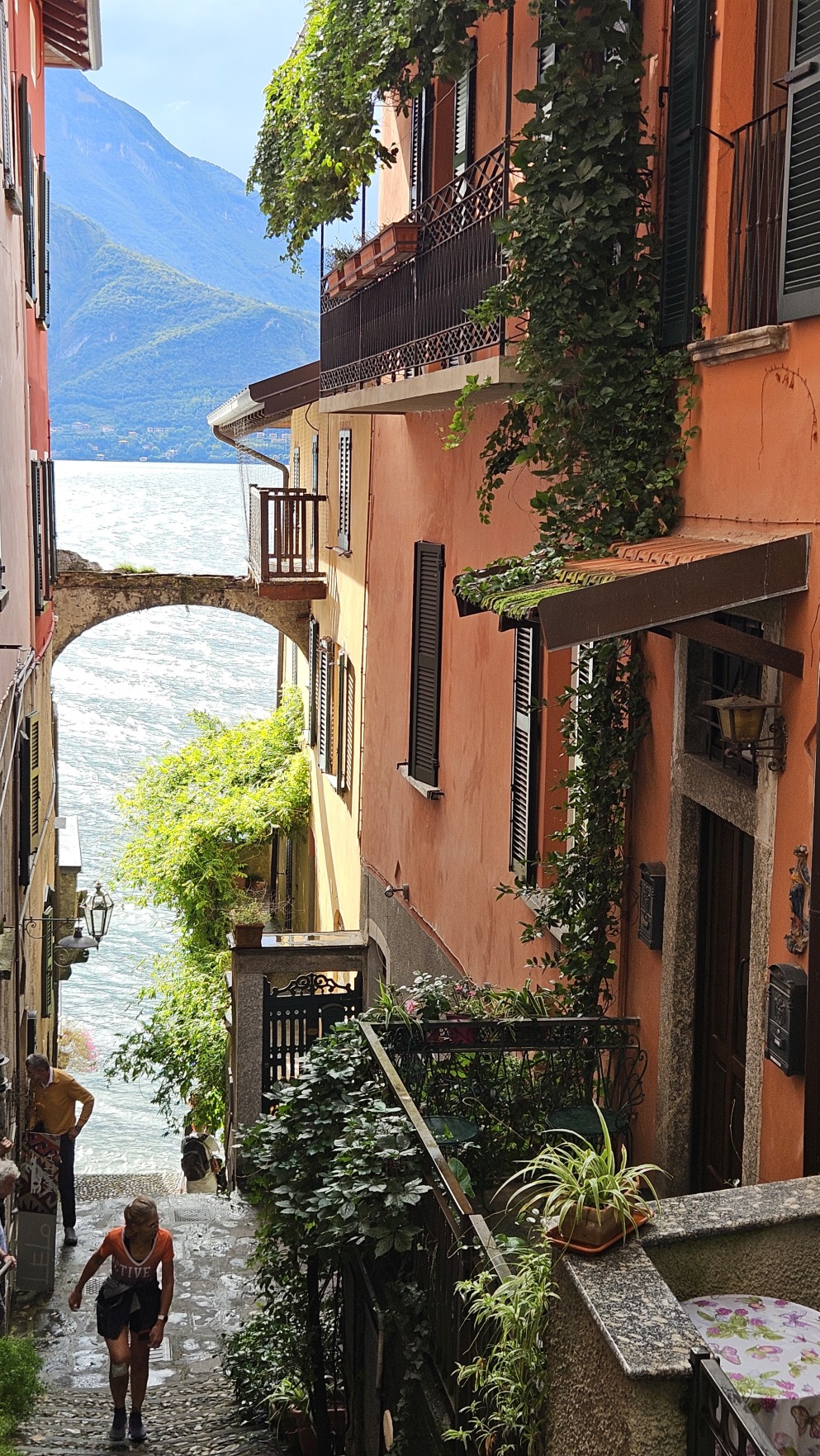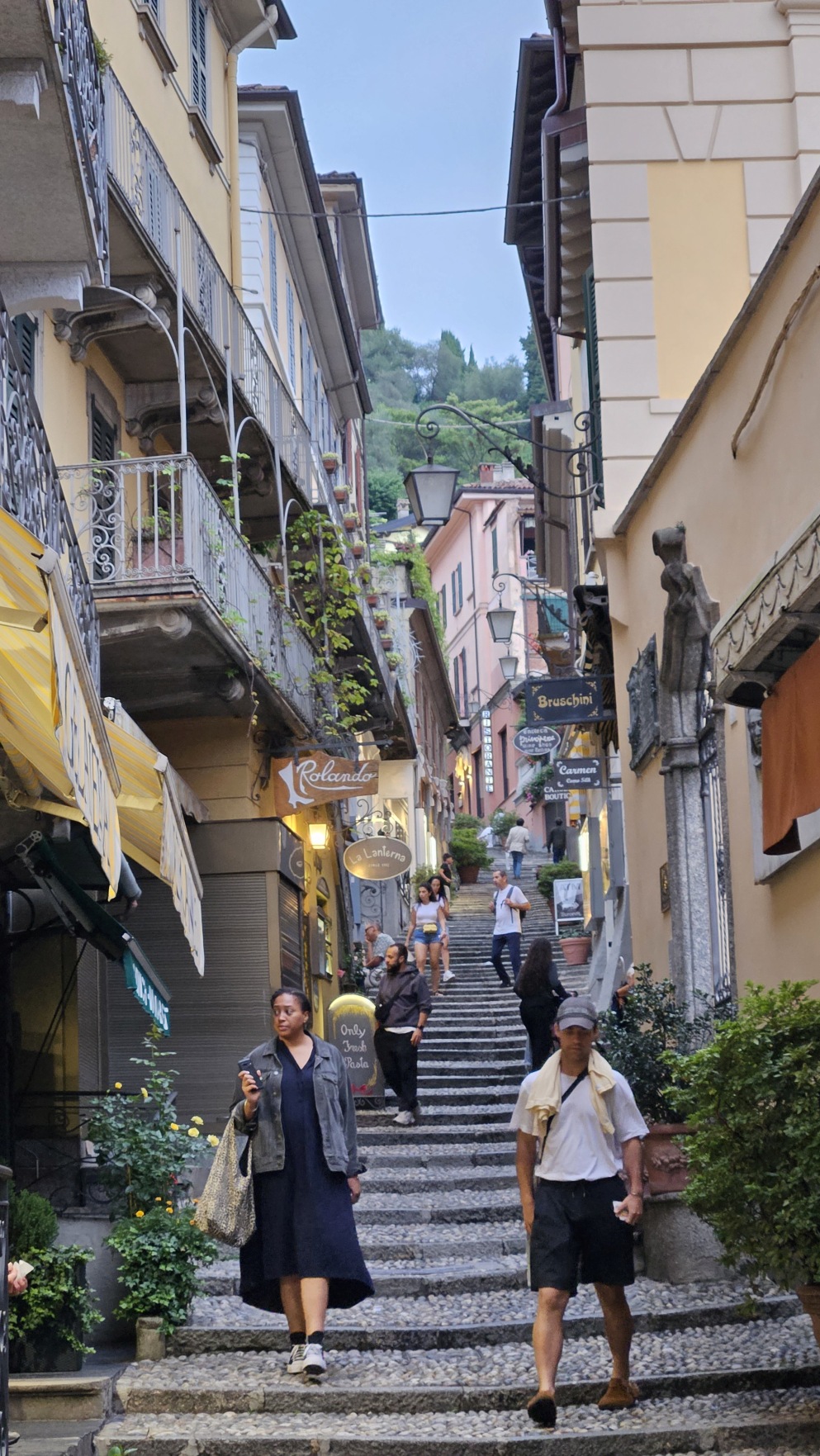Menaggio to kolejne przepi臋kne miasteczko. Nawet w takich, da si臋 zje艣膰 w przyzwoitej cenie, ca艂e szcz臋艣cie. Tm razem by艂a to carbonara. Oj, du偶a i t艂usta. I r贸wnie偶 promem wr贸ci艂em do Bellagio.