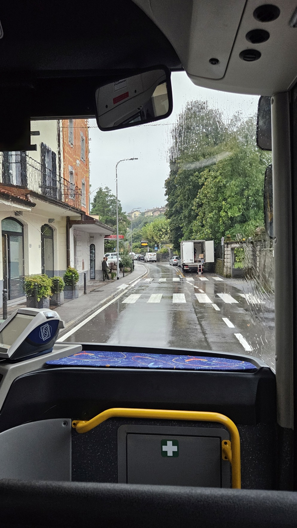 W drodze do Menaggio, przez obfite opady, wyst膮pi艂y utrudnienia, zawali艂 si臋 kawa艂ek muru przy drodze i ca艂a droga stan臋艂a. Autobus w ko艅cu by艂 w stanie podjecha膰 do Argegno, gdzie wszyscy wysiedli i przesiedli si臋 na prom, by kontynuowa膰 podr贸偶. Mimo, 偶e to odr臋bni przewo藕nicy, prom zabra艂 ch臋tnych za darmo.