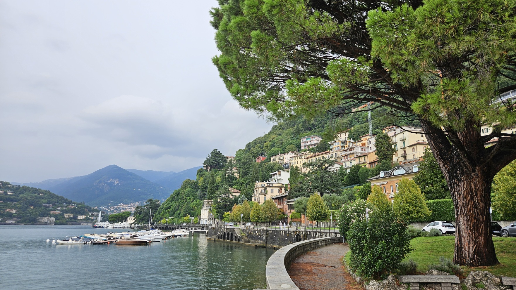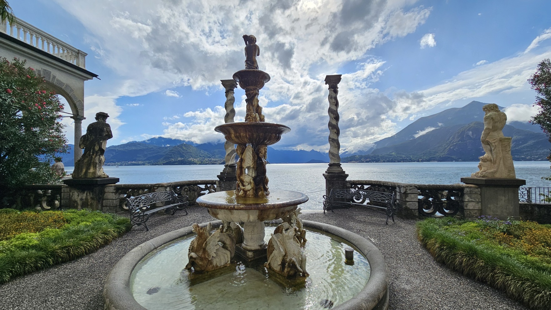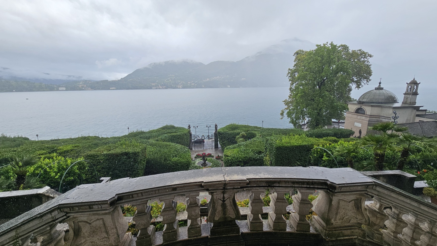 Kolejny deszczowy dzie艅, to ma艂o typowe o tej porze roku. Dzie艅 rozpocz膮艂em od zakupu dziennego biletu na promy mi臋dzy popularnymi miastami w okolicy. Pop艂yn膮艂em do Villi Carlotty. Podobnego rodzaju villi jest nad jeziorem mn贸stwo, ta akurat nie wymaga艂a wcze艣niejszej rezerwacji.